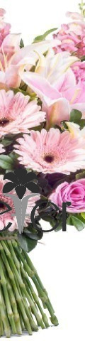 4 x Pink Stargazer Lilies, 5 Pink Gerbera, 4 x Pink Roses, Pink Lakspur