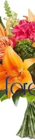 4 x Orange Lilies, 2 Orange Roses, 2 Hot Pink Carnations, Purple Statice
