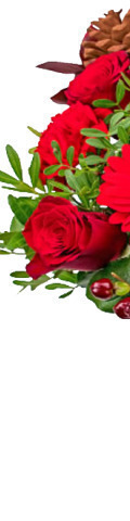 5 Red Roses, 5 Red Carnations, 2 Red Gerbera, Cinnamon Sticks, Pinecones